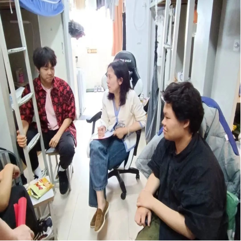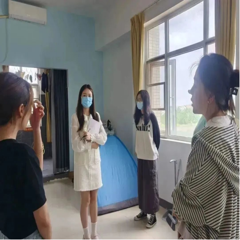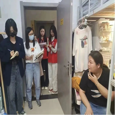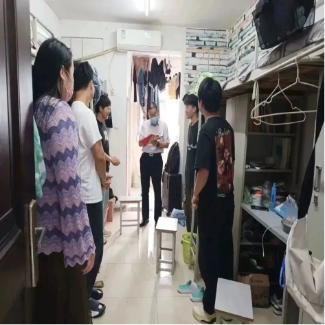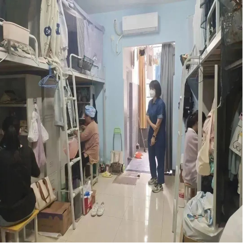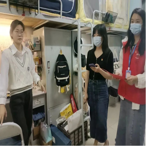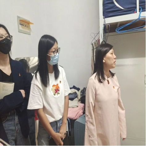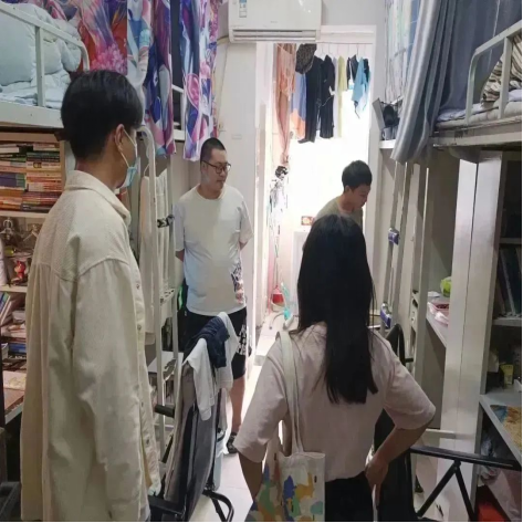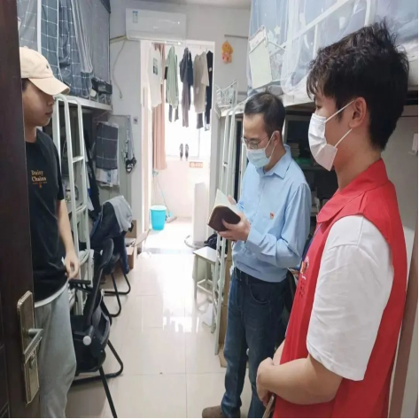 本次参与走访活动的党员老师与员工们依照党员联系员工宿舍信息表前往自己对应的走访寝室,充分做到点对点全覆盖,不遗漏每一个寝室,关爱到每一位学子,为9栋、21栋的大二员工们送去真切的关怀和问候。