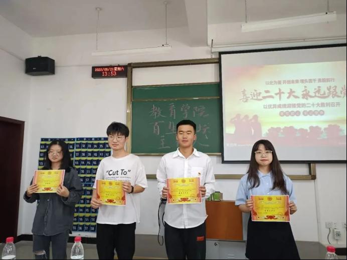 而后诸位选手们在短短的比赛时间里用慷慨激昂的演讲和饱含深情的朗诵向大家倾泻了自己对党的赞美和对国家的热爱。