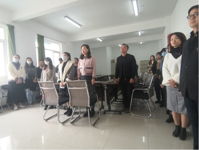 会议开始之初,全体人员起立,奏唱国歌
