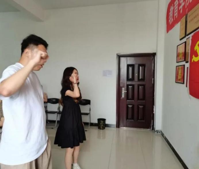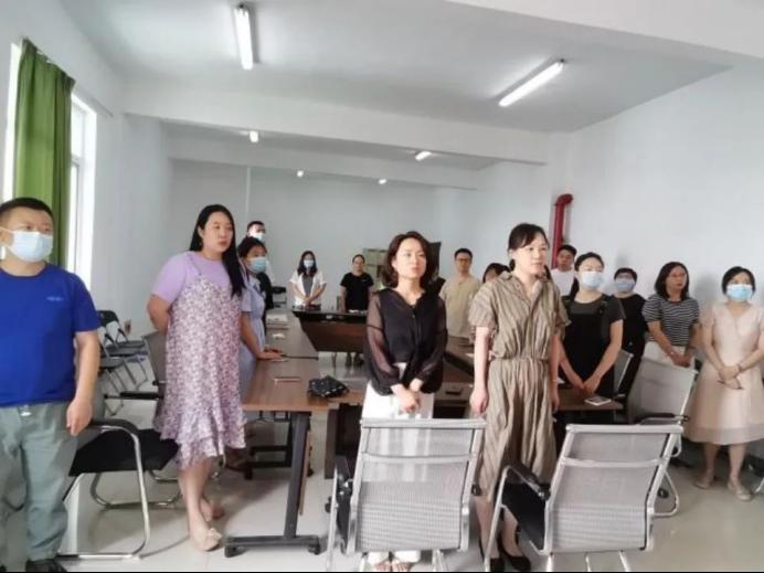 奏唱《国际歌》后,全体起立,向党旗致敬,行注目礼,两位新发展的党员上前向党旗致敬宣誓。全体党员重温入党誓词,字字有力、句句铿锵的誓言坚定了支部党员为党和人民奋斗终生的决心和意志。