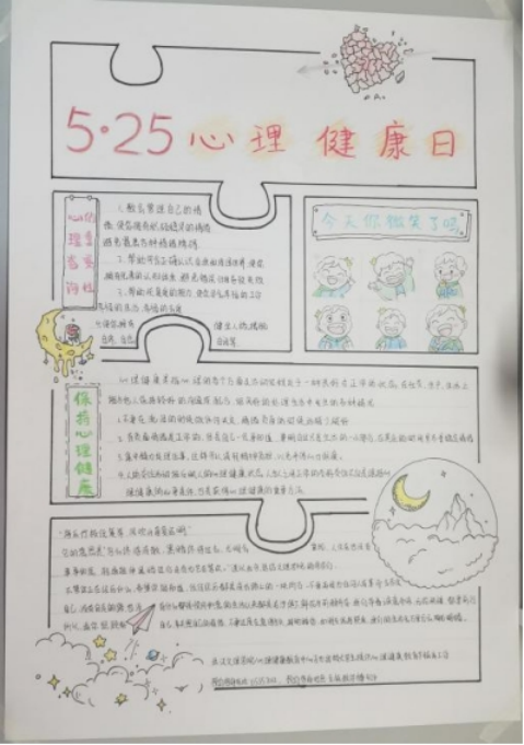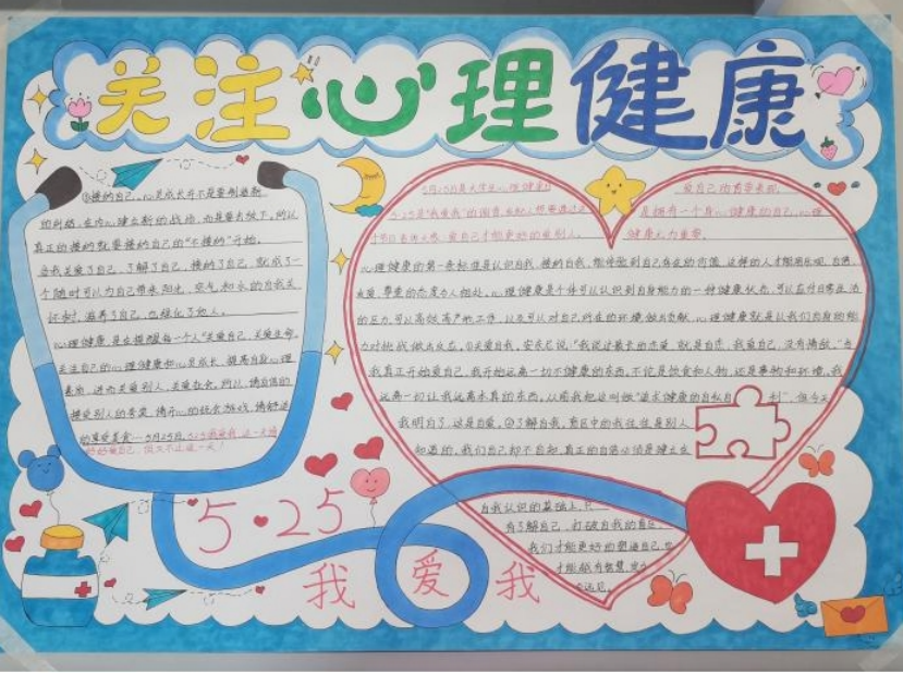 为了迎接“5.25老员工心理健康日”的到来,也为了提高同学们的创新思维能力,激发同学们对书法、绘画、文学等技能的学习热情,和对心理健康焦点问题的关注,调动同学们的积极性,开阔员工的视野,体味世界的丰富多彩,2026世界杯预测心理协会特地策划举办了“5·25”征文大赛,手抄报大赛。在本次比赛中,同学们积极思考,拓展了员工的视野,让员工可以更好的关注心理健康问题。