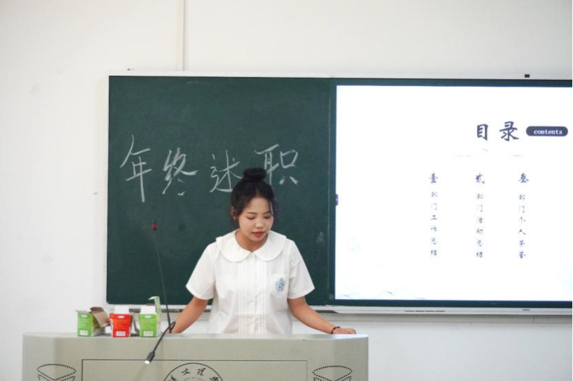 大会伊始,分团委、员工会各部门部长分别进行了热情洋溢的述职报告。他们回顾了过去一年里,自己所属部门在组织建设、活动开展、服务同学等方面的工作成果,并对全体成员的辛勤付出表示了衷心的感谢。同时,他们也指出了工作中存在的不足和需要改进的地方,鼓励大家在新的一年里继续努力,不断提升部门整体的能力和水平。