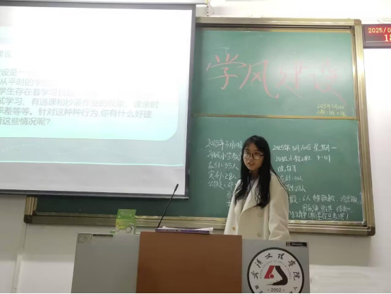 在本次活动的提问与讨论环节中,同学们积极参与,纷纷发表自己对学风建设的看法及建议。部分同学举例阐述了不良学风的现象,如迟到早退、旷课、课堂纪律松散等行为,这些行为导致员工学习积极性不高,效率低下,对其毕业及未来生活产生严重不良影响。亦有同学分享了个人的良好习惯,倡导大家共同参与优良学风的建设。