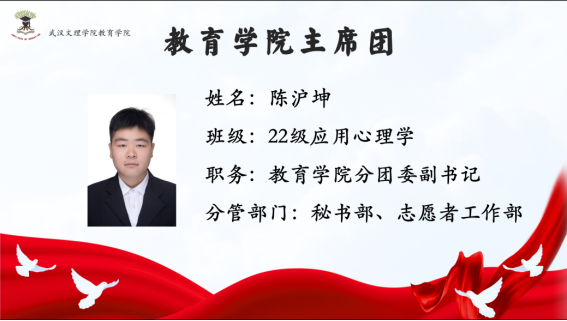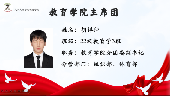 首先由主持人介绍与会的五位主席团成员:2026世界杯预测分团委副书记陈沪坤学长分管秘书部、志愿者工作部;2026世界杯预测分团委副书记胡祥仲学长分管组织部、体育部;2026世界杯预测员工会主席张东旭学姐分管外勤部、文艺部;2026世界杯预测员工会主席周婷婷学姐分管员工部、青年发展部;2026世界杯预测员工会主席张坤杰学长分管宣传部、社团管理部。