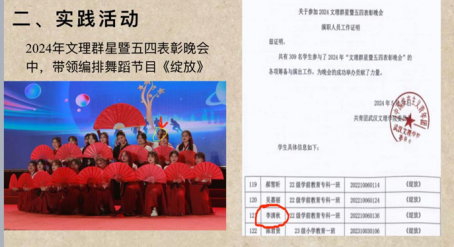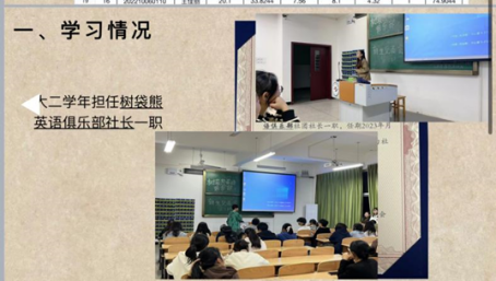 进入大二学年,她不仅在综测排名及智育排名有所提高,更是担任了树袋熊英语俱乐部的社长,积极组织社团活动,投身校园文化建设。在此期间,她考取了普通话二甲证书,并努力备考其他技能证书,以不断提升自身能力。