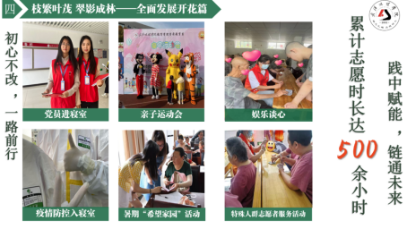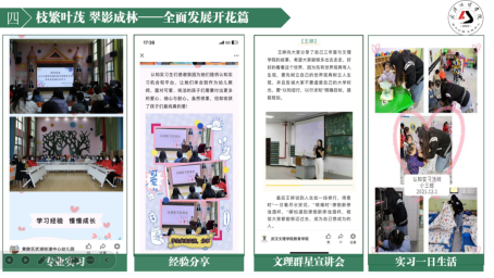 枝繁叶茂,翠影成林。王婷同学带队参加专业见习活动,代表团队进行经验分享。积极参加多项志愿服务和社会实践活动,作为学前教育专业的员工,将知识技能带入特殊人群,手工、画画、唱跳,与她们一起交流,帮助他们走出阴霾,累计志愿服务时长达500余小时。她说:“如今的我,正长成一棵坚韧不拔的青竹,向下扎根,向上生长。未来的我将继续带着这份勇气,安心沉淀,用爱心耐心去教导员工,看清每一朵花开的方向。”