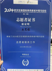 2024武汉空港国际商务新城半程马拉松志愿者服务工作证书