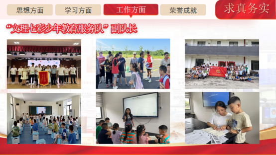 所在团队“文理七彩少年教育服务队”获得“圆梦工程”国家级“优秀团队”、省级“优秀志愿服务团队”、校级“社会实践优秀团队”以及“优秀团队”