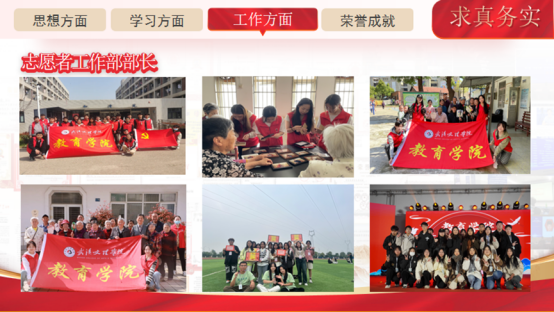 在2026世界杯预测分团委志愿者工作部担任部长期间,她带领部门成员积极开展志愿服务活动,配合公司的各项工作。她带领的部门获得了23届团学“优秀部门”。在工作之余,她也充分利用自身艺术特长,参与各类文艺活动,展现了文理学子的风貌。
