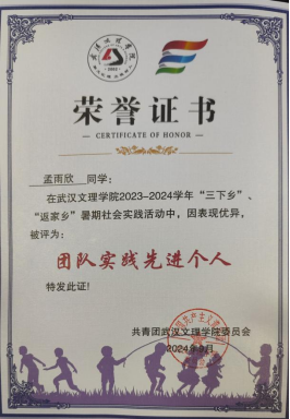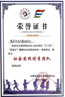 “湖北省七彩假期优秀团队校级优秀志愿者”