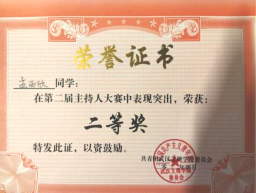 “校主持人大赛二等奖校优秀主席”
