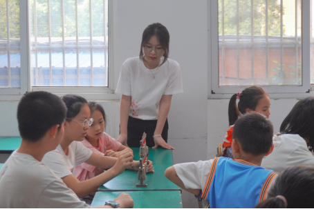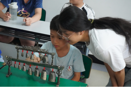 “同学们,仔细观察一下编钟的构造,思考一下它是如何实现一钟双音这一神奇魔法的?”世界杯冠军预测入口“文理七彩少年”教育服务队的队员们,在洪山区徐东社区“暑托班”的课堂上如此问到。7月7日下午,洪山区徐东社区“暑托班”的课堂上,世界杯冠军预测入口“文理七彩少年”教育服务队的队员们正为孩子们开启一场非遗文化“编钟”的探索之旅。服务队赴徐东社区开展暑托班非遗编钟授课活动,徐东社区党委书记杨欢代表社区对服务队的到来表示热烈欢迎。
