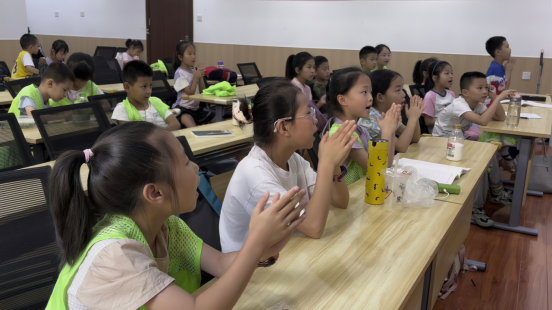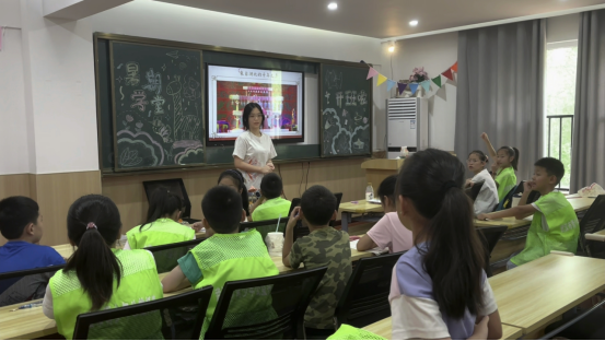 “老师,你们明年还会来吗?”“老师明年有机会一定来!”,江夏区藏龙青少年空间社区内,一句稚嫩的追问与温柔的回应交织,成了这个夏日里最动人的注脚。7月24日上午,文理七彩少年教育服务队的队员们带着精心准备的“钟鸣楚天 戏传千年”课程走进社区,让孩子们在欢声笑语中触摸历史的温度。