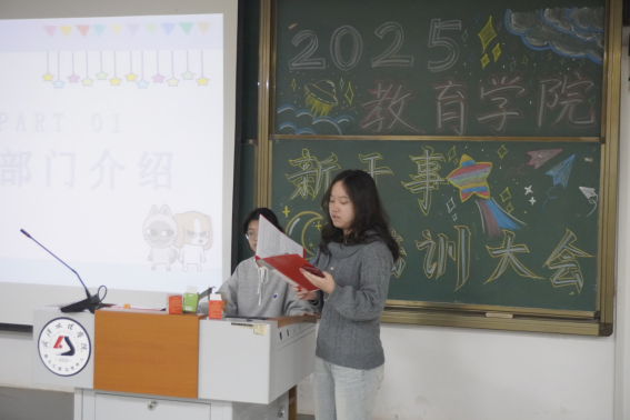 大会培训环节有序推进,各部门部长依次登台发言,结合本部门职能定位与过往工作成效,条理清晰地拆解核心职责、具体工作流程及年度重点规划,同时系统分享工作思路、执行方法与沟通协作技巧。详实的讲解与生动的分享,让新干事们快速明晰岗位要求、掌握履职技能,也进一步加深了对团学工作价值的认知,助力其更快深度融入团学集体。