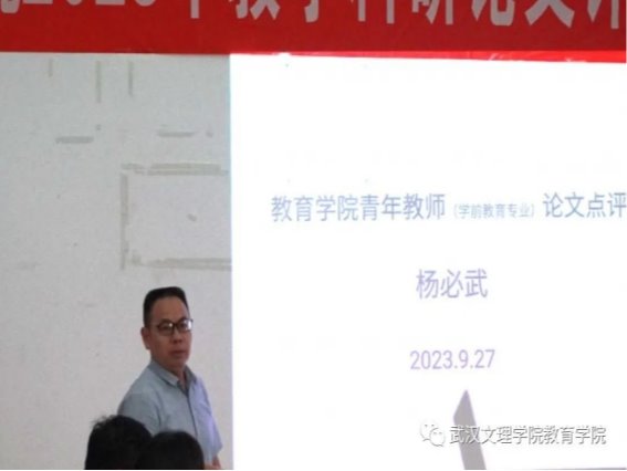 杨必武教授针对学前教育专业老师的论文进行点评,杨教授从基本情况、特色与亮点、期待与建议三个方面开展点评。杨教授的点评犀利精准,给出了选题大体可取,有待创新突破的总体评价,并且指出这是青年老师最应当跨越的一道坎。同时杨教授再次指出摘要、关键词、参考文献的重要性,具体问题分析后详细地给出相应的建议。他还在大会上提到“我们常说英雄所见略同,然而我们在做任何文章的时候,都要努力追求英雄所见不同。”