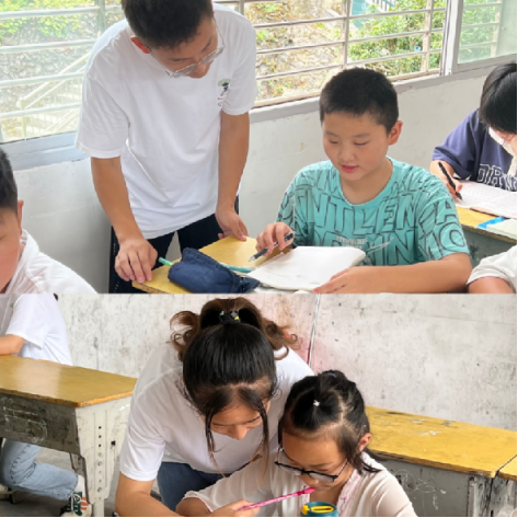 即使酷热难耐,七彩少年志愿服务队仍坚持教师试讲,课表制定,重组教室,早晚点名。和孩子们一起学习,一起游戏,给孩子们带来了知识和快乐。